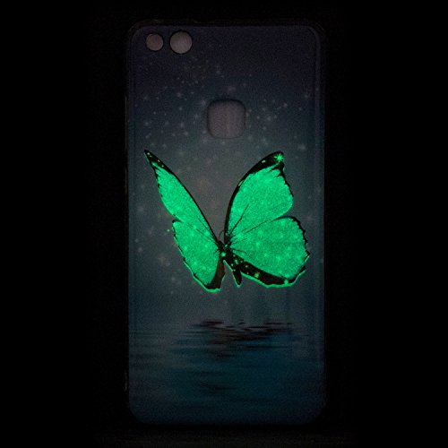 Sycode Luminoso Custodia per Huawei P10 Lite,Cover per Huawei P10 Lite,Moda Creativo Speciale Fluorescence Lampeggiante Effetto Morbido Custodie per Huawei P10 Lite Bella Elegante Blu Farfalla Acqua Modello Ultra Sottile Flessibile Soft Tpu Gomma Silicone Gel Antigraffio Nottilucenti Morbida Bumper Protettiva Skin Shell Copertura Rigida per Huawei P10 Lite-Luminoso Blu Farfalla