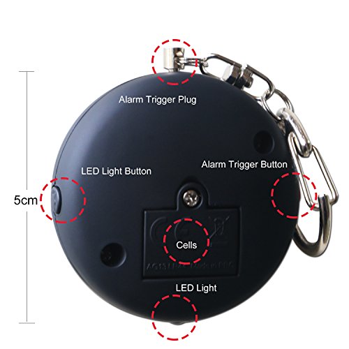 SYCOTEK Chiave Allarme con Proiettore a LED Integrata Audio, Questo Allarme da Borsetta con un Forte Volume da 130db, Nero