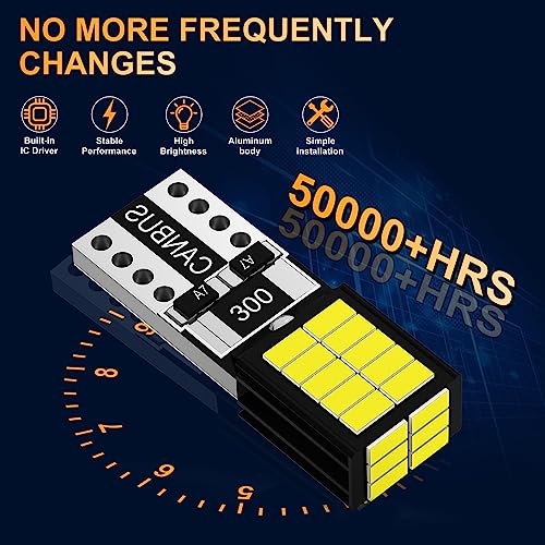 【Nuova generazione di aggiornamento】 La tecnologia LED Canbus W5W T10 garantisce un'installazione senza errori su il 99% dei veicoli. L'aggiornamento dei chipset e dei componenti elettronici garantisce una durata più lunga, una rapida dissipazione del calore, un basso consumo energetico e una luminosità superiore del 300% rispetto alle lampade alogene. Inoltre, l'installazione è facile e non richiede attrezzature speciali.