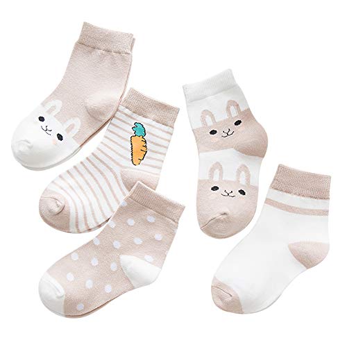 SYEEGCS Calzini Bambini Ragazze Ragazzo Neonati Calze Cotone 5 Paia Spessi Traspirante Confortevole Modello Ravanello Coniglio - Cachi S