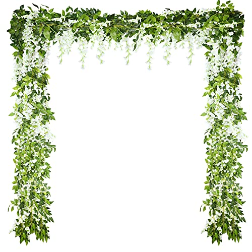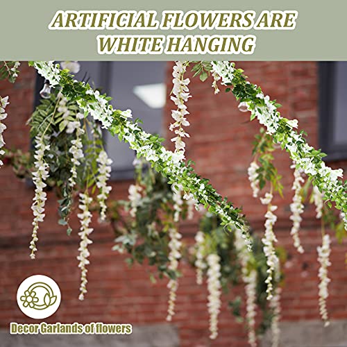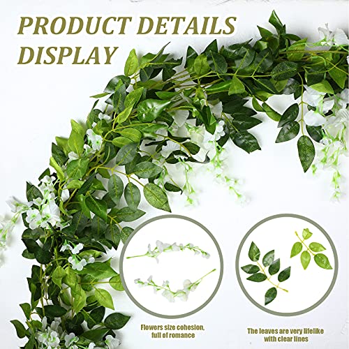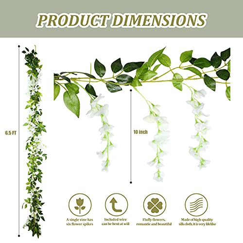 Syhood 4 Pezzi 26 Feet Ghirlanda di Glicine Artificiale Fiori Artificiali Vite di Glicine di Seta Vite di Glicine Artificiale Fiore Appeso Ghirlanda di Glicine Finto per Nozze Giardino (Bianco)