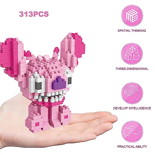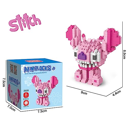 Sykerout Stitch Cartoon Mini Bricks Set, Lilo e Lilo Bricks, Particelle di plastica Micro Bricks Puzzle, Giocattoli da costruzione per adolescenti e adulti, Premio, Regalo di compleanno (rosa)