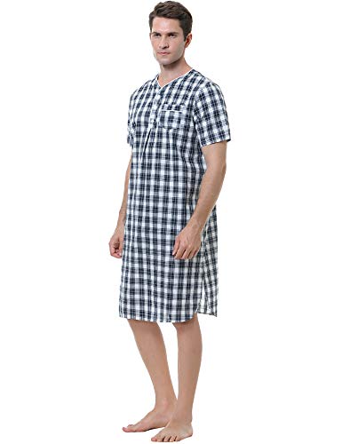 Sykooria Camicia da Notte Uomo Manica Lunga Cotone Camicie Lunghe da Uomo Girocollo a Quadri Sciolta Pigiami Uomo Autunno e Inverno