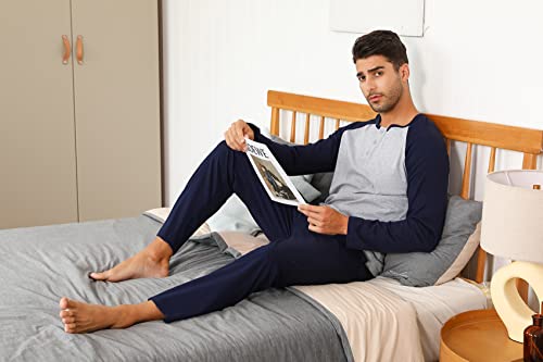【Pigiama a maniche lunghe da uomo】 - Il pigiama classico da uomo in 2 pezzi è composto da un top a maniche lunghe e pantaloni lunghi del pigiama. Il design a contrasto aggiunge un look classico e semplice a questo pigiama da uomo, bottoni frontali aperti per indossarlo e toglierlo facilmente;