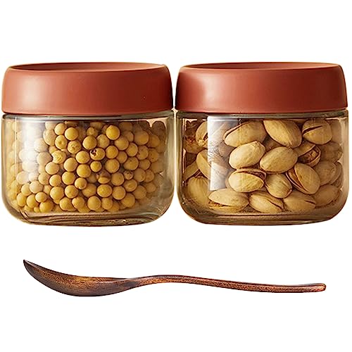 Sylanda Overnight Oats - 2 bicchieri da 280 ml, in vetro per cereali, con cucchiaio, con coperchio e cucchiaio, in vetro Meal Prep, piccoli barattoli rotondi per alimenti