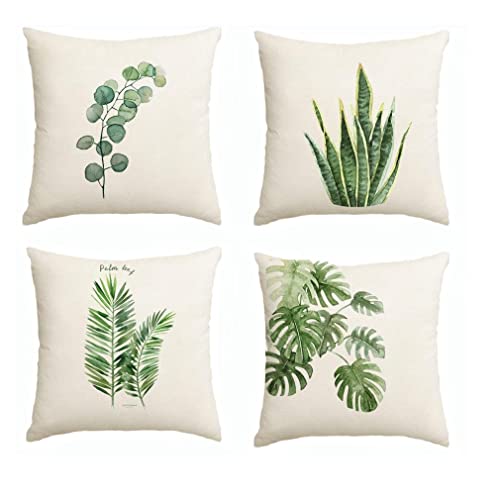 Syleubucy Federa per cuscino romantico con piante rustiche, 40 x 40 cm, verde