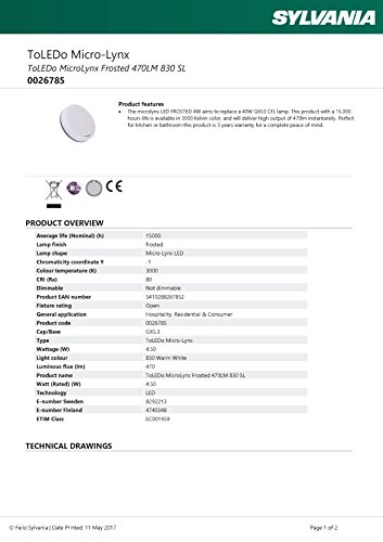 Sylvania 0026785 Toledo Microlynx Satinata, GX5.3, 4.5 watts, Bianco, 7.8 x 3.8 x 7.8 cm