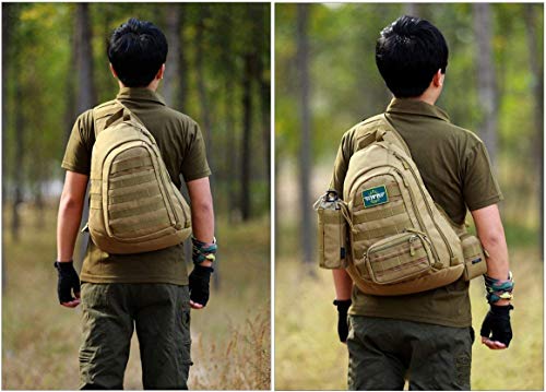 SYMALL Uomo Zaino Monospalla Nylon Borsa a Tracolla Militare Tattico Zaino Sportivo Outdoor Viaggio Marsupio Escursionismo Borsa per Campeggio Ciclismo Trekking Porta Smartphone Chiave Denaro, Marrone
