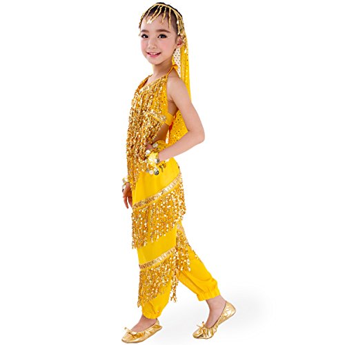 Costume da bambina motivo danza del ventre, morbido e comodo, perfetto per spettacoli e altre feste di danza, eventi.