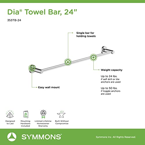 Symmons Dia - Barra porta asciugamani, 61 cm, Metallo, Finitura cromata, 24 pollici (61 cm)