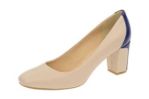 Geox Symph.Mid Pumps D32W2A - Pompa, in vera pelle, con tacco da circa 10 cm, colore: beige e blu, beige., 39 EU