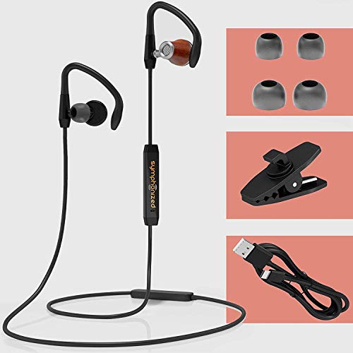 Symphonized NRG S Bluetooth Wireless Auricolari, Cuffiette In Legno con Isolamento Acustico, Microfono e Controlli incorporate (Nero)