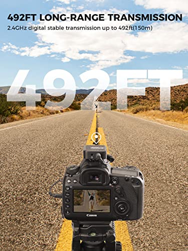【Trasmissione 150M e Cancellazione del Rumore con un Solo Tocco】Il microfono G1(A1) Pro trasferisce segnali stabili e anti-interferenza da un trasmettitore a un ricevitore fino a un raggio di 429ft/150m (LOS) con bassa latenza di 12,5ms. Grazie alla tecnologia DSP integrata, il microfono offre una qualità audio elevata durante la trasmissione in diretta, e la cancellazione del rumore con un solo tocco aiuta a eliminare il rumore di fondo indesiderato.