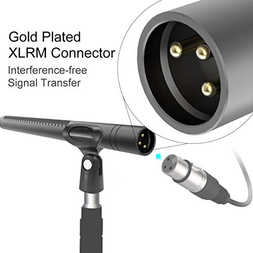 Connettori XLRM placcati in oro: connettori XLRM a 3 pin universali placcati in oro (noto anche come connettore Cannon) per il trasferimento del segnale senza interferenze. Il microfono può essere collegato alla maggior parte delle videocamere, pali del braccio, treppiedi con un cavo standard XLRM-XLRF da 50 cm (incluso).
