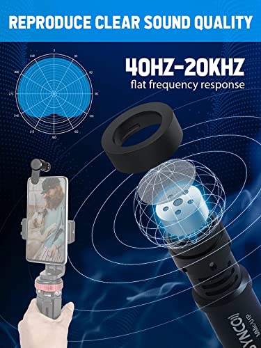 【Design flessibile e stabile】 il microfono supporta una rotazione di 90° e si adatta alla direzione del dispositivo. Se si utilizza un selfie o una telecamera posteriore, è possibile cambiare rapidamente l'area di ripresa. Un supporto è progettato per mantenere il microfono saldamente in posizione.