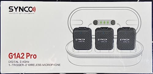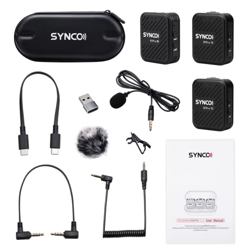 SYNCO G1 A2 Pro Microfono Lavalier Wireless 2.4G Clip On Risvolto Microfono Sistema Trasmettitore Kit Ricevitore con Custodia di Ricarica per Fotocamera DSLR Smartphone