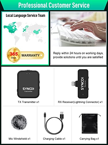 SYNCO Microfono Wireless per iPhone, G1L Lightning [Certificato Apple MFi] 2.4GHz Micro Lavalier Senza Fili con 9 Effetti Vocali, Microfono-Lavalier-Wireless-iPad-iPhone 13/12/11
