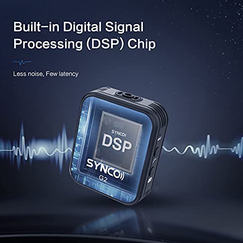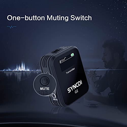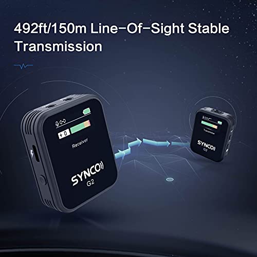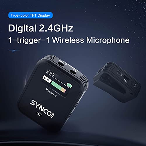 SYNCO G2 (A1) Sistema microfono lavalier wireless a 2,4 GHz Trasmettitore 1-trigger-1 con ricevitore, trasmissione 230 piedi / 150 m per DSLR Fotocamera mirrorless Smartphone Videocamera audio