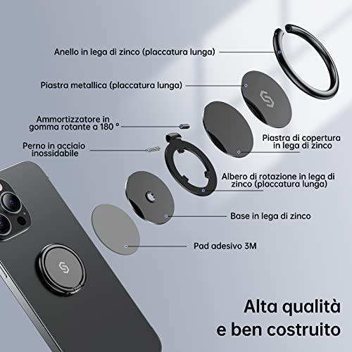 Syncwire Anello Supporto Telefono Cellulari Universale Anello Metallico Rotazione 360° Gradi Smartphone Ring per iPhone 14/13/12/11 Pro Max X/XS, XR, 8 7 6s Plus,Samsung,Huawei,Xiaomi,LG