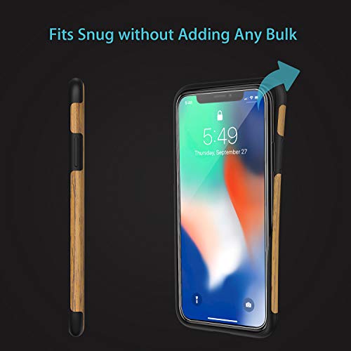 Syncwire Cover iPhone X/XS - Custodia Protettiva Telefono in Legno, Copertura Agganci Ultra Sottili Antiurto Non Scivoloso Custodia in Legno - Legno su Gomma