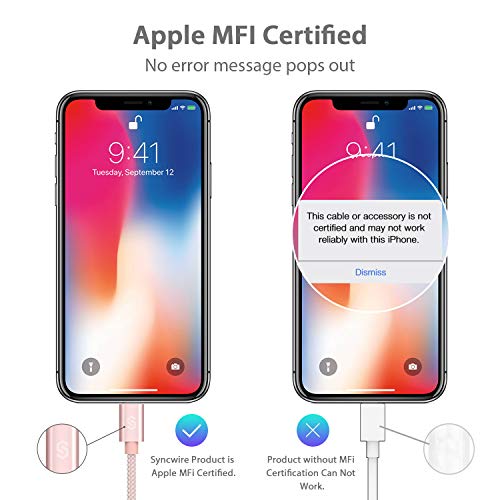 SYNCWIRE Cavo Lightning Cavo iPhone [Certificato Apple MFi] Cavo in Nylon per iPhone X/8/8Plus7/7Plus /6/6 Plus /6S/6S Plus /5S/5C/5/SE, iPad Air/2, iPad Mini /2/3/4, iPad 4, iPad PRO- 1m Oro Rosa