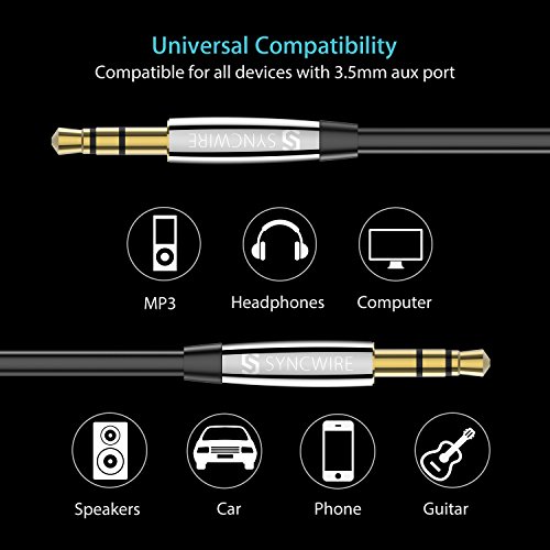 Syncwire Cavo Aux Macchina 3,5mm - Cavo Jack Maschio Maschio per Cuffie, Auto, Stereo per la Casa, Apple iPod iPhone iPad, Smartphone, Autoradio, Echo dot, MP3 ecc - 1m/3.3ft Nero