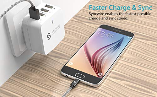 Syncwire Cavo Micro USB [2 confezioni] 2 m 2.4A USB - Cavo di ricarica rapida per smartphone Android, Samsung, HTC, Sony, Nexus e altro ancora, nylon grigio