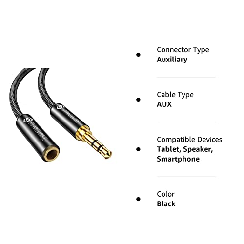 Syncwire Cavo Prolunga Jack 3.5mm in Nylon 3M Cavo Stereo da Maschio a Femmina, per Cuffie Beats, Apple iPhone, iPad, iPod, Smartphone, MP3 ed Altri - Nero