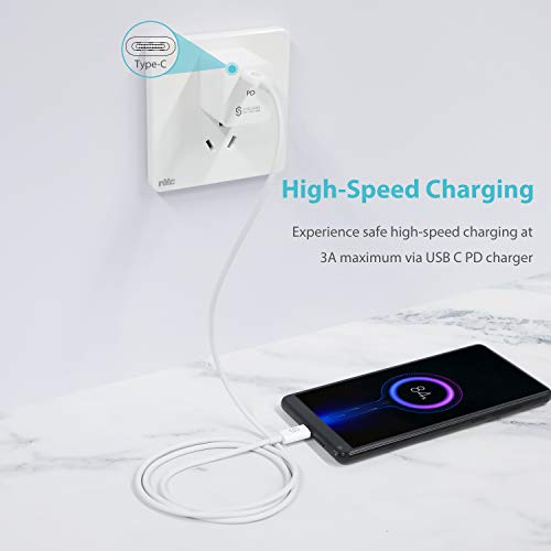 [Durabilità Ineguagliabile] - Con uno Speciale Design Serracavo, questo cavo di ricarica da Tipo-C a C può resistere ad oltre 10.000 cicli di test di piegatura a 90 gradi. Ideale per un uso quotidiano intenso. Chipset intelligenti con resistori di pull-up integrati da 56KΩ assicurano una ricarica più sicura e più veloce e non danneggiano la batteria del tuo telefono.