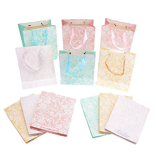 Syndecho 12 Pezzi Sacchetto di Carta Kraft Borse di Carta Multicolore per Compleanno, Matrimonio, Bambino Doccia, Feste di Celebrazione-Verde,Bianco,Giallo,Rosa
