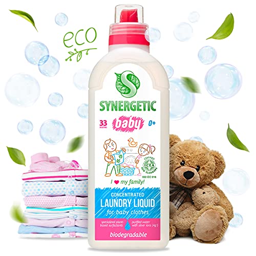 SYNERGETIC Ipoallergenico, detersivo liquido per bambini | Detergente liquido biodegradabile per biancheria dei bambini | inodore e sensitivo gel detergente concentrato 33 lavaggi, 1 L
