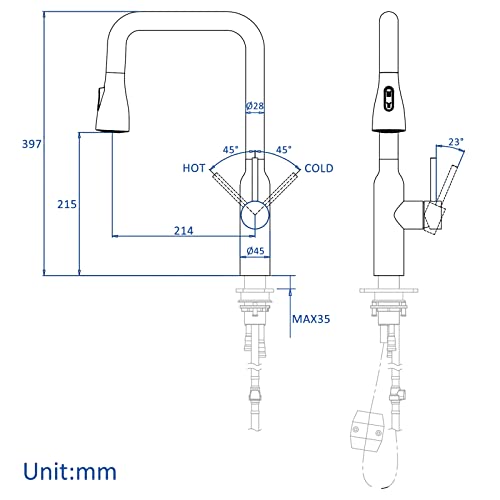【Uso flessibile】: il rubinetto touch da cucina può essere ruotato di 360 gradi e l'ugello può essere esteso per un uso prolungato. L'estensione massima è di 60 cm, che può soddisfare le vostre esigenze di acqua per doppi lavelli. Il pulsante dell'ugello può cambiare la modalità acqua con un pulsante, la prima modalità di uscita doccia, la seconda modalità di uscita della colonna d'acqua.