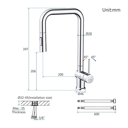 Facile installazione e garanzia - tubo standard tedesco da 3/8". Viene fornito con istruzioni di installazione per un facile montaggio. Un'installazione impropria fa sì che il sensore del rubinetto non funzioni correttamente. Su accessori da cucina forniamo 5 anni di garanzia e potete contattarci in qualsiasi momento durante l'uso. (At