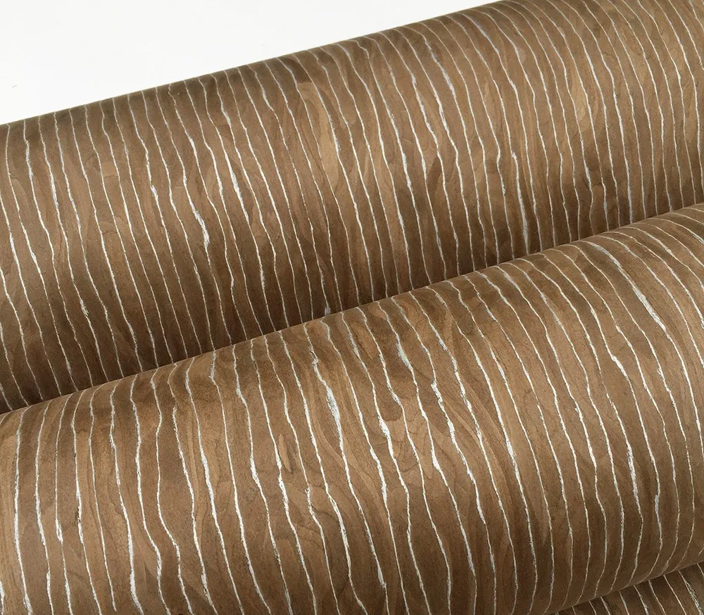 Synthetic Technology Veneer Engineerd Veneer E.V. 60x250cm Wide Strip Silver Line Q/C Brown