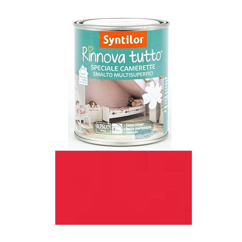 SYNTILOR - RINNOVA TUTTO SMALTO SPECIALE CAMERETTE 0,250 LT GLAMOUR Syntilor ha creato per voi lo Smalto Rinnova tutto Speciale Camerette. Con una pennellata rinnovate l'atmosfera della cameretta del vostro bambino! Prodotto sano: inodore per rispettare l'utente e il bambino Efficace: senza sverniciatura, senza primer. Rapido: prodotto pronto per l'uso, lavoro finito in un week-end. Punti di forza: Inodore, Ultra resistente, Lavabile, Aspetto finale perfetto, Aspetto satinato, Preparazione