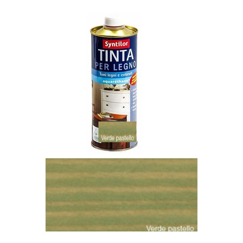 SYNTILOR TINTA PER LEGNO AQUARETHANE INODORE 250 ML COLORE: VERDE PASTELLO Senza odore, la Tinta per Legno Aquaréthane® toni legni e colorati Syntilor possiede agenti coloranti insensibili alla decolorazione, fissati da resine poliuretaniche-acriliche. Di una durata eccezionale, è adatta per ogni tipo di finitura (vernici, vetrificatori, cere, oli...) per interni. Inodore Asciutto in 30 minuti Tinte stabili Applicazione facile Alta resistenza ai raggi U.V. Speciale per gli interni RESA +/- 3 a 4 mq per 0,250 litri MODO D'USO: - Agitare bene la latta prima e durante l'uso. - Aderenza perfetta su legni puliti, asciutti e senza traccia di vecchie finizioni (sverniciare con uno Sverniciatore Syntilor ). Levigare con un abrasivo fine. Spolverare con cura. - Applicare 1 o 2 mani, secondo la profondità di tono desiderata. - A pennello (di preferenza morbido): stendere la tinta nel senso delle fibre del legno, evitando spessori eccessivi. - A batuffolo (cotone che non lasci peli): pratico e