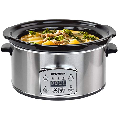 Syntrox Germany SC-350D Slow Cooker Digitale in Acciaio Inox, 3,5 Litri, con Timer e Funzione di Mantenimento del Calore, Nero