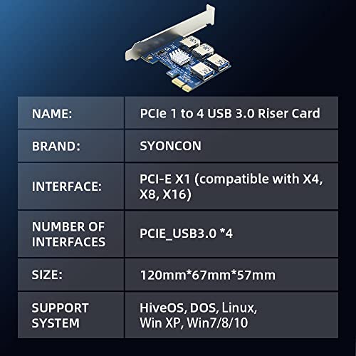 SYONCON PCIe Splitter 1 a 4 PCI-Express 16X Slot Riser Card, PCI-E 1X a Esterno 4 USB 3.0 Adattatore per BTC Miner Machine GPU Mining