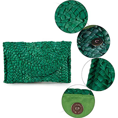 Syrads Borsa da sera in paglia da donna Borsa da spiaggia estiva Borsa a busta intrecciata,Verde