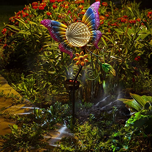 Sysdisen Lampade solari a farfalla | Ghirlande luminose solari multicolori Lampade decorative impermeabili | Arredamento da giardino ad energia solare per vialetto del prato del giardino del percorso