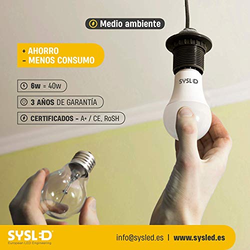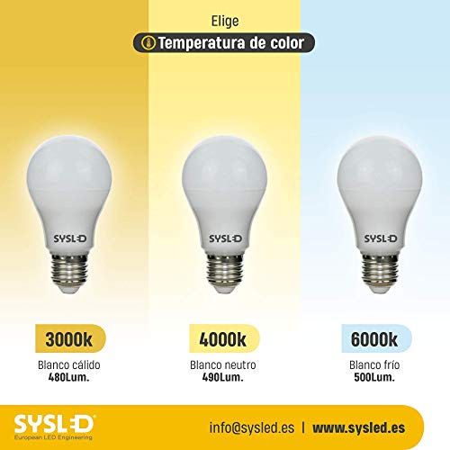 Sysled - Confezione da 8 lampadine LED A60 Attacco Gordo E27 6 W bianco caldo (3000 K)