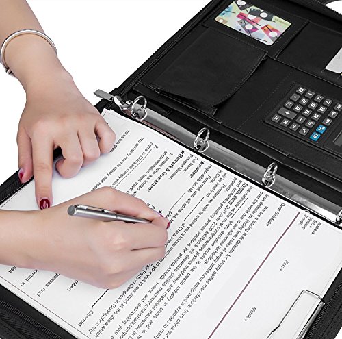 Sysmarts Cartella Portadocumenti con Calcolatrice Portablocco A4 Folder/Organizzatore Cartellina Porta Documenti in PU Cerniera per Casa Ufficio Business Conferenza Viaggio con handle (Nero)