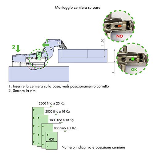 System Holz s.r.l. Kit 10 Cerniere Made in Italy per Mobili con Ante in Legno, acciaio nichelato