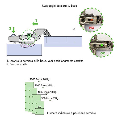 System Holz s.r.l. Kit 10 Cerniere Made in Italy per Mobili con Ante in Legno, colore: acciaio nichelato