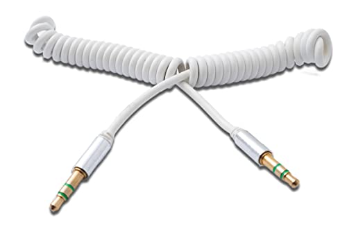 System-S Cavo audio, 150 cm, 3,5 mm, stereo, maschio a maschio, a spirale, colore bianco