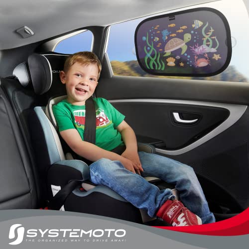 Systemoto Parasole Autoadesivo Auto indicato per Neonati con Protezione UV Certificata (Set da 2 pezzi) - Tendine Parasole Auto Bambini con Simpatici Motivi
