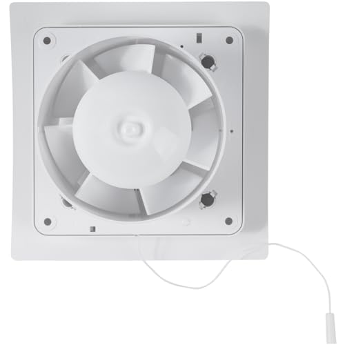 Vent Systems Ventilatore da bagno, 100 mm, con interruttore a tirante, ventilatore da soffitto, piastra frontale bianca, ventilatore da parete, ventilatore integrato, per bagno e cucina