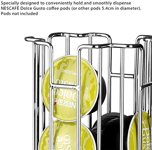 SYSYLY Porta cialde per 32 capsule Dolce Gusto, supporto girevole per capsule di caffè, dispenser per capsule di caffè, base antiscivolo, cromato