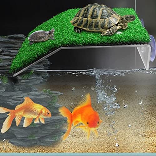 SYXLS Piattaforma Basking di Tartaruga, Realistica Verde Tappeto Erboso di Riposo Terrazza, Non Tossico Insapore Erba Artificiale Scaletta Tartaruga Dock con Ventosa, per Piccoli Rettili, Taglia