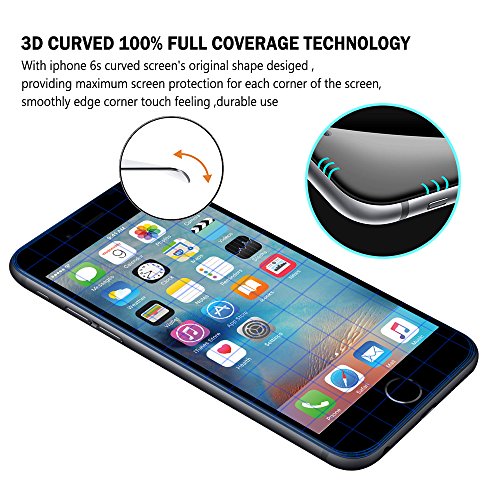 * Protezione dello schermo in vetro temperato 3D, design perfetto per il vostro iPhone, meglio di 2,5 D. Protezione completa dello schermo: dimensioni precise forniscono la massima protezione per l'intera superficie touchscreen del vostro iPhone 6/6s, adattando i suoi bordi curvi